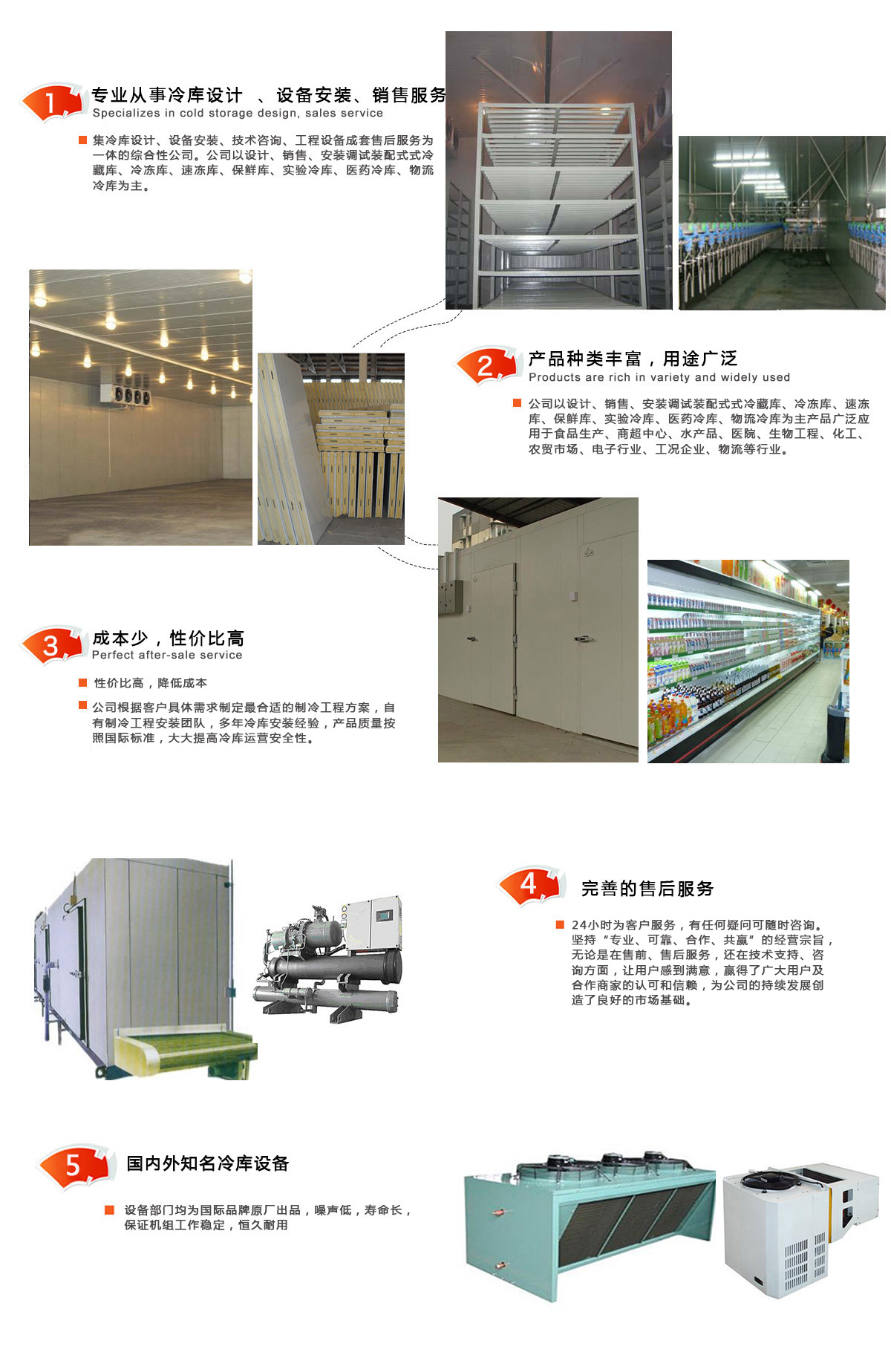 公司以設(shè)計(jì)、銷售、安裝調(diào)試裝配式式冷藏庫、冷凍庫、速凍庫、保鮮庫、實(shí)驗(yàn)冷庫、醫(yī)藥冷庫、物流冷庫為主